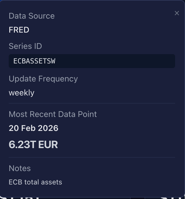 The ‘?’ will provide much detail on the data source and information about the expected frequency in updates. For example, here is what it looks like accessing the ‘?’ for the ECB
